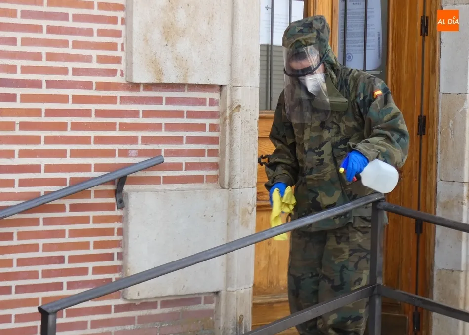 Militares del cuartel de Salamanca se han desplazado a la localidad para realizar esta misión que han agradecido los profesionales sanitarios