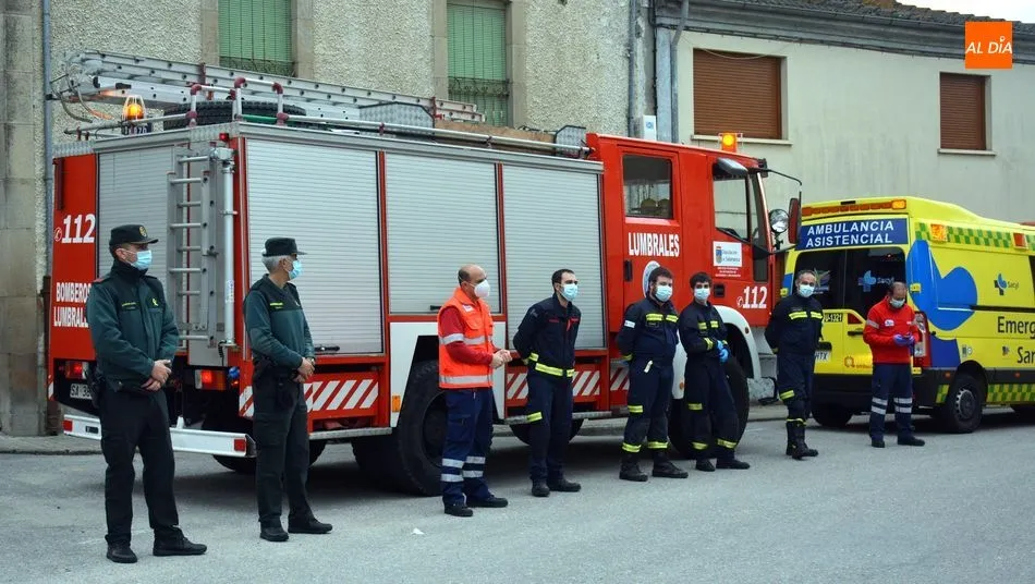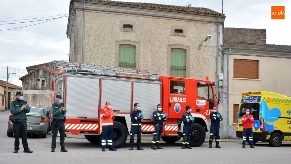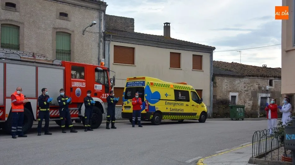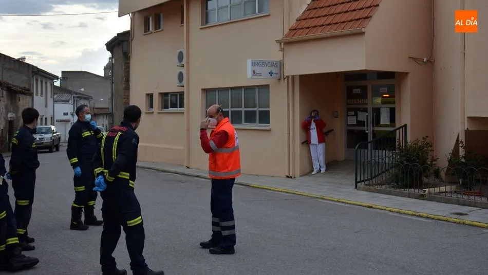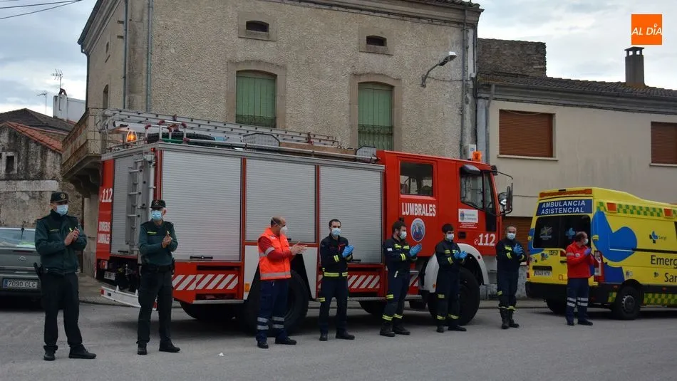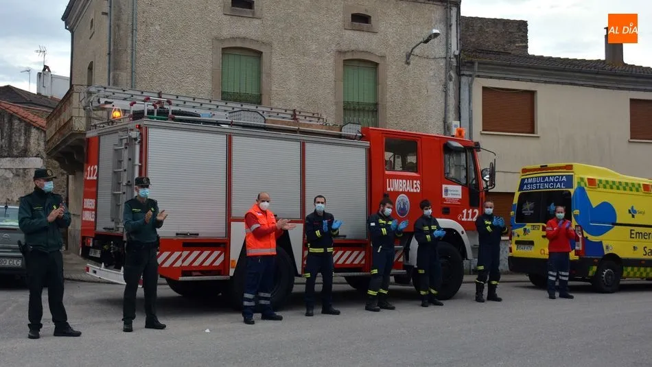 Los Bomberos del Parque de Lumbrales, la Guardia Civil y los sanitarios de guardia en el centro de salud de la capital del Abadengo se han reunido de nuevo la tarde del viernes en la puerta del consultorio para sumarse al momento de los aplausos de reconocimiento a estos colectivos que los vecinos de la villa vienen realizando cada día a las 20,00 horas desde el comienzo del estado de alarma.