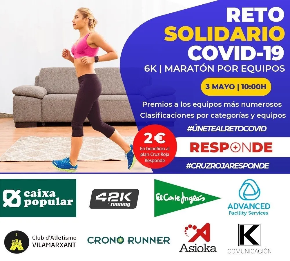 El 'Reto solidario Covid-19' es un maratón por equipos y una carrera de seis kilómetros exclusivamente interior que se celebrará el domingo 3 de mayo de 10 a 14 horas, en cintas de correr o en zonas privadas, sin salir a la calle.