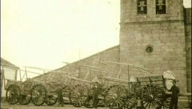 En sus inicios se centró en el trato de la madera para la fabricación de carros y utensilios de labranza como podemos observar en una de las imágenes. En la correspondiente a la Plaza de la Iglesia se puede apreciar, detrás del remolque, las antiguas escuelas de las niñas. Su edificación puede ser del año 1913. En la actualidad esto ha cambiado, la plaza está asfaltada y las escuelas no existen.