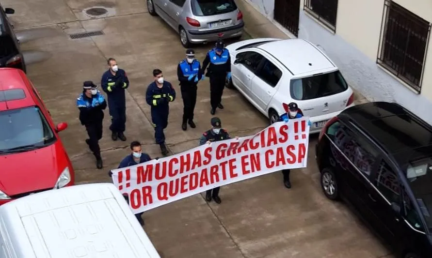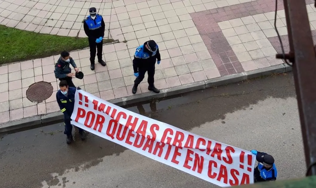 Durante la tarde del viernes se pasearon por la misma con una pancarta de agradecimiento bomberos, policías y guardias civiles