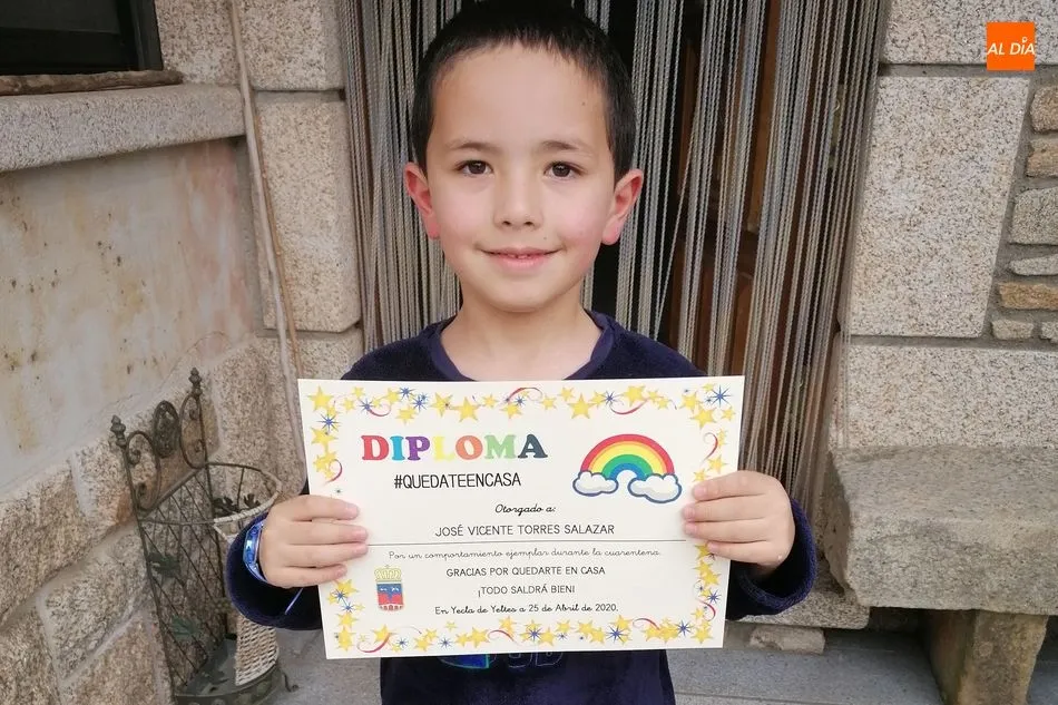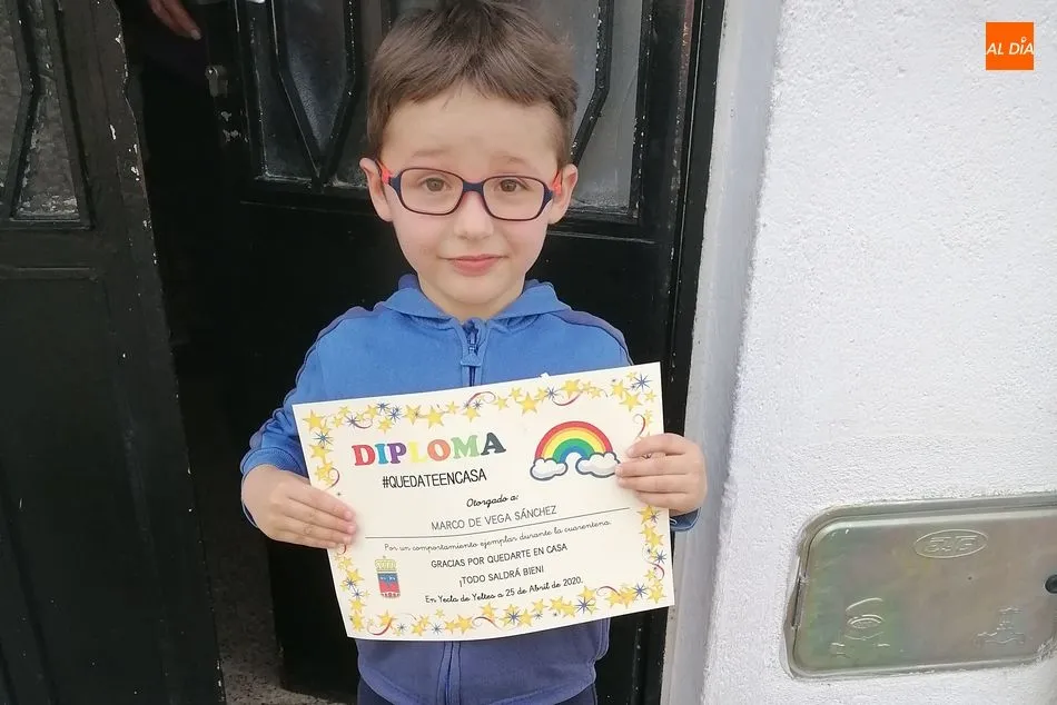 Y al mismo tiempo que se realizaba al reparto de mascarillas, los responsables municipales procedían a la entrega, a cada niño de la localidad, de un diploma #Quedateencasa, que ha sido otorgado por su comportamiento ejemplar a lo largo del confinamiento, además de una bolsa de chucherías.