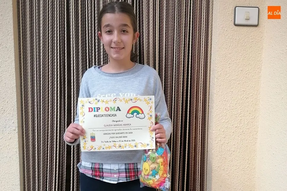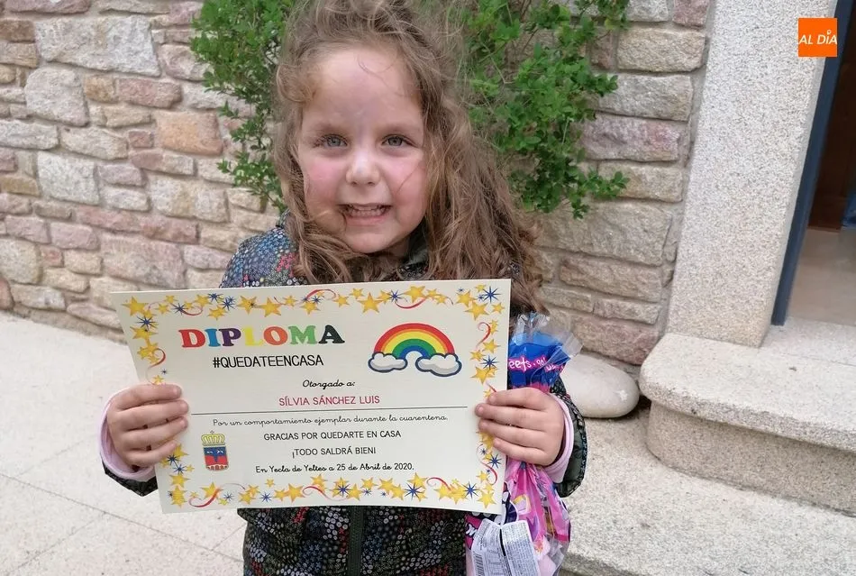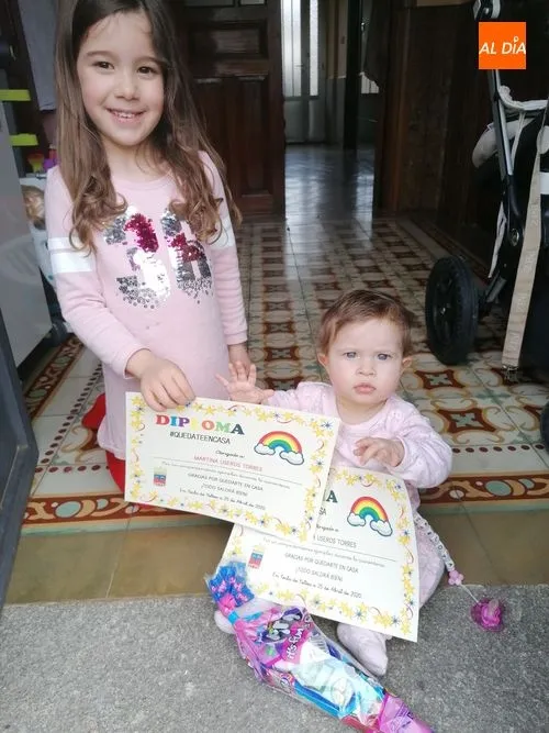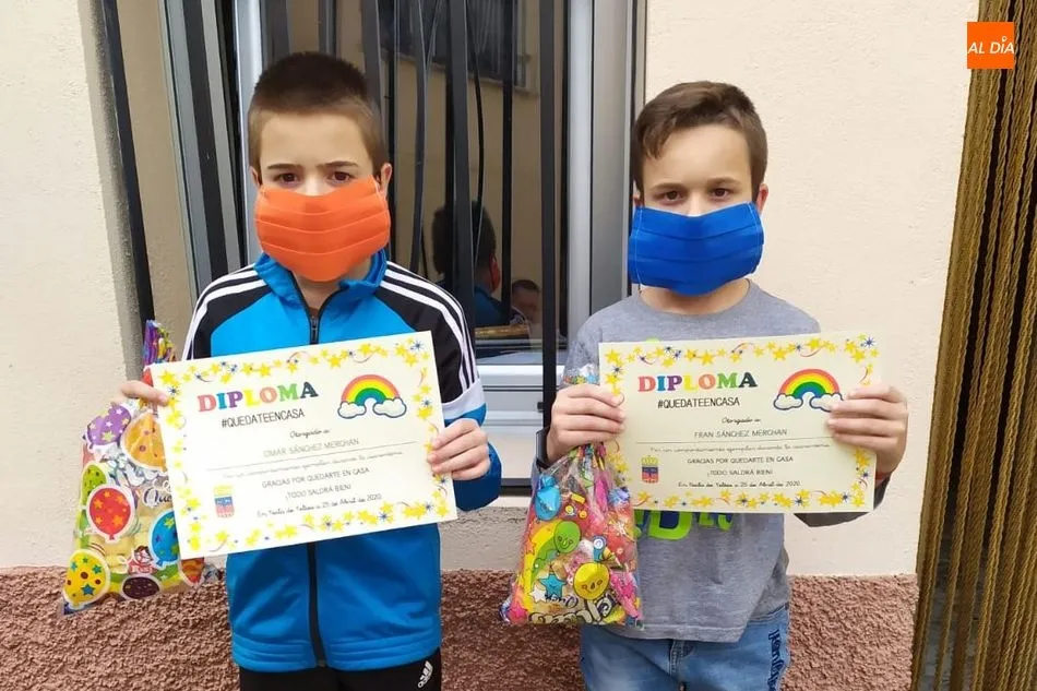 Junto con el diploma #Quedateencasa se les hacía entrega de una bolsa de chucherías como premio a su paciencia durante 44 días en casa