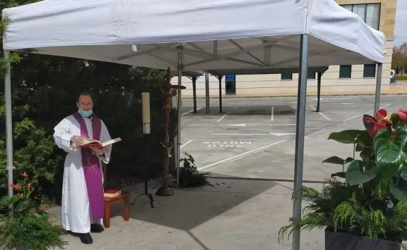 Junto a la entrada del cementerio se ha instalado una carpa, donde han colocado una Cruz y un hisopo. En cada enterramiento se sigue el mismo ritual: ?Se recibe a la familia en la carpa, de entre 3 a 5 familiares máximo, se les acompaña hasta la tumba, se bendice la misma, y se realiza la oración?.