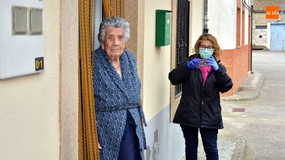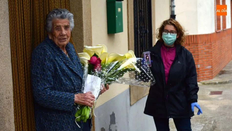 La centenaria vivió con gran alegría la visita y la entrega de un ramo de flores en la puerta de su casa donde reside ella sola