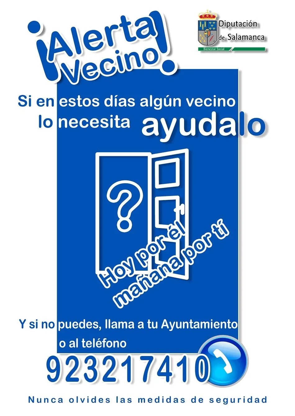 La Diputación de Salamanca ha puesto en marcha la iniciativa ?Alerta Vecino?, una acción promovida por el área de Bienestar Social con la finalidad de que las personas residentes en cualquiera de los municipios de la provincia puedan contribuir a la detección de situaciones de vulnerabilidad social.