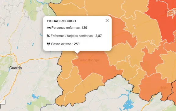 De este modo, la Zona Básica de Ciudad Rodrigo (La Atalaya, El Bodón, Carpio de Azaba, Castillejo de Martín Viejo, Ciudad Rodrigo, La Encina, Monsagro, Pastores, Saelices el Chico, Sancti-Spíritus, Serradilla del Arroyo, Serradilla del Llano, Tenebrón y Zamarra) totaliza en estos momentos 420 contagiados en total desde el 29 de febrero, de los cuales están activos 259 (también 4 más que los datos del sábado).