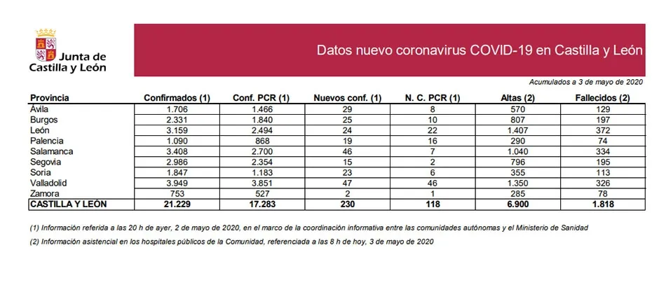 Los datos diarios de la incidencia de coronavirus de la Junta de Castilla y León señalan que la provincia de Salamanca ha contabilizado 46 nuevos casos de COVID-19 en las últimas 24 horas. De ellos, 7 confirmados a través de prueba PCR. Se trata de un aumento respecto a ayer (32 casos), lo que eleva el número total a 3.408, de los que 2.700 han sido confirmados a través de pruebas PCR.