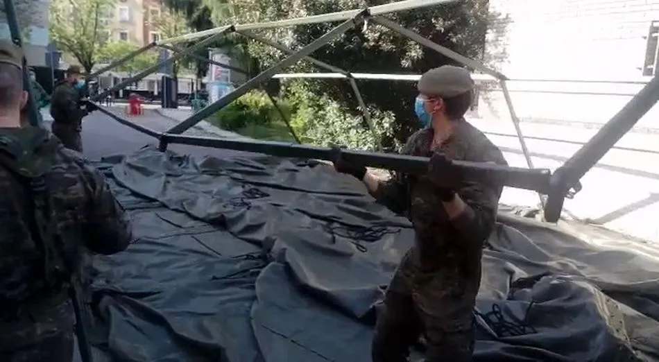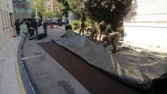 El Regimiento de Ingenieros nº 11 concluye esta tarde el desmontaje y repliegue de la ampliación del Hospital General Universitario Gregorio Marañón en Madrid. Según informan desde la unidad militar con base en Salamanca, una vez realizadas las labores de descontaminación de esta instalación temporal, se está procediendo al desmontaje y repliegue de los medios de campaña que han facilitado el aumento de las plazas de este centro hospitalario durante los días en que el progreso de la pandemia en la capital española lo requería.