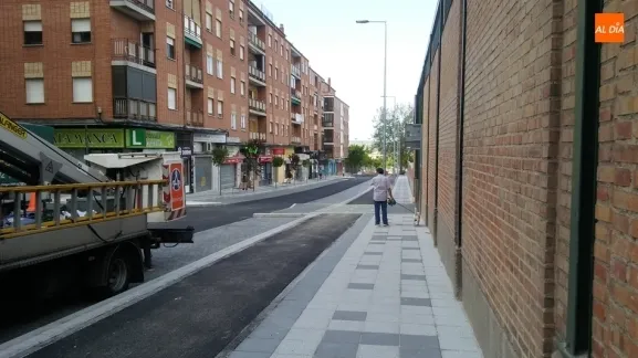 Los vecinos del barrio San Bernardo que estos días -en la fase 0 de la desescalada- salen a pasear o a realizar la compra ya pueden transitar por las nuevas aceras de la renovada calle La Alberca, cuyas obras de urbanización están a punto de finalizar. La calle, lógicamente, sigue cortada al tráfico de vehículos.