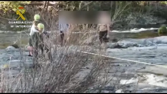Según el instituto armado, sobre las 19,50 horas del jueves, la Guardia Civil recibió un aviso de que dos menores y un adulto se encontraban en apuros atrapados en una roca en mitad del río.