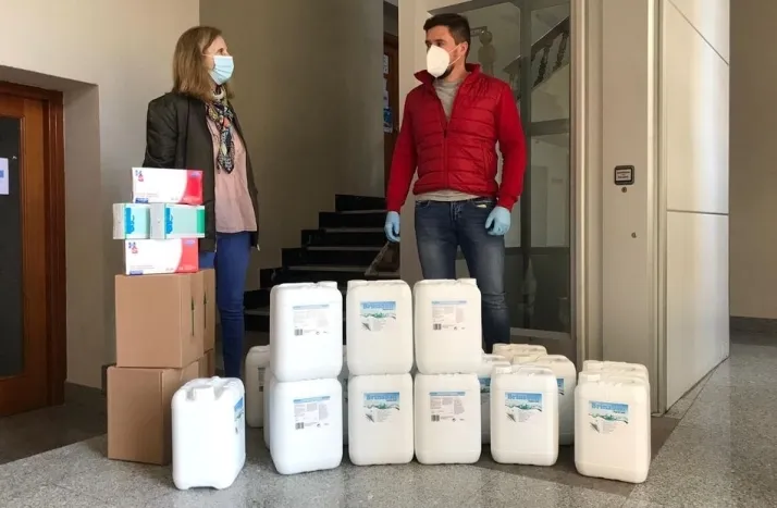 Fernando García, representante de Agropal Ganadera, ha realizado una donación de 250 litros de un desifectante líquido en spray antiséptico, que elimina el 99% de virus y bacterias en unos pocos minutos en cualquier superficie e incluso en el ambiente.