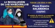 Tal y como ha sucedido en el Barrio de Salamanca, en Madrid, una convocatoria anónima, denominada ?La revolución de las mascarillas? está divulgando en grupos de whatsapp la convocatoria de una manifestación contra el Gobierno, que pretenden que sea diaria, a las 21.00 horas en la capital charra, en concreto en la plaza de España.