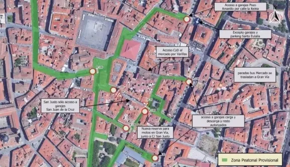 Este plan de medidas transitorias será revisable y se aplicará, en gran parte del casco histórico pero también en otras vías como la plaza de la Merced, calle Veracruz, calle Tentenecio, plaza San Juan Bautista y calle Los Perdones, durante dos fines de semana y del 25 de mayo en adelante todos los días.