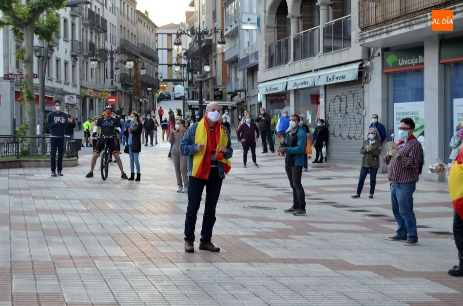Por primera vez en Béjar un grupo de ciudadanos se ha echado a la calle para protestar por la gestión del Gobierno durante la pandemia del coronavirus, sin gritos pero haciendo sonar palmas y cacerolas que también se han oído desde los balcones, han manifestado sus quejas y volverán a hacerlo todos los días a las nueve de la noche en La Corredera.