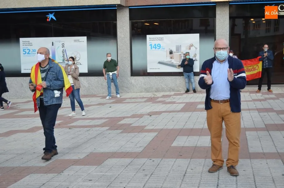 Evitando aglomeraciones, respetando la distancia de seguridad y con mascarillas; portando algunas banderas de España y bajo el lema ?#Sánchezveteya? algunos bejaranos a título personal y varios concejales del Partido Popular, han manifestado sus quejas durante la hora de paseo de los adultos, ante la presencia policial que no ha tenido que intervenir en ningún momento.