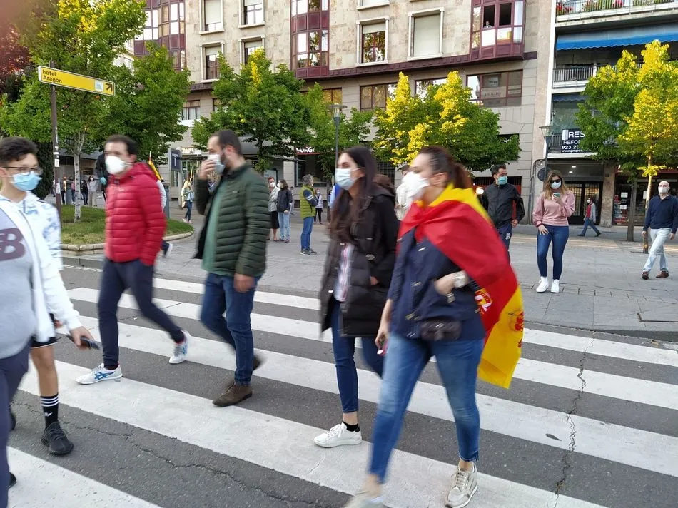 Por tercera semana consecutiva un grupo de salmantinos se ha echado a la calle para protestar por la gestión del Gobierno durante la pandemia del coronavirus. Con gritos de ?¡Libertad!? y golpeando las ya habituales cacerolas, más de 200 personas repitieron las quejas que se han venido repitiendo en los últimos días.