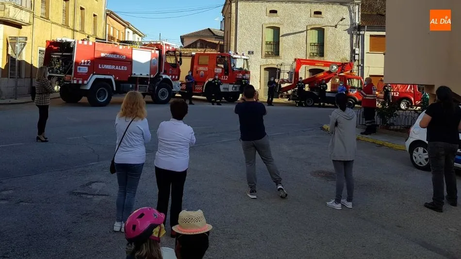 Los Bomberos del Parque de Lumbrales, la Guardia Civil y los sanitarios delcentro de salud participaron la tarde de ayer domingo en el acto de reconocimiento y agradecimiento a los vecinos por su comportamiento durante el estado de alarma ante la pandemia del coronavirus Covid-19, una acción que se viene realizando semanalmente en Lumbrales desde el día 27 de marzo. El acto se inició a las ya emblemáticas 20,00 horas en la puerta del centro de salud con el aplauso colectivo de agradecimiento mutuo entre vecinos y los agentes y sanitarios.