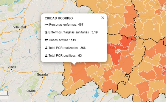 La mayor parte de estos nuevos casos se da en la Zona Básica de Ciudad Rodrigo, con 7 casos más para totalizar 467. Se trata del peor incremento en un día en esta Zona desde hace casi dos semanas, desde el pasado 6 de mayo, cuando la cifra también se incrementó en 7 personas. Al menos, pese a esta subida, la cifra de casos activos desciende en 4 personas (lo que indica que hay 11 personas a las que se les ha dejado de considerar enfermas).