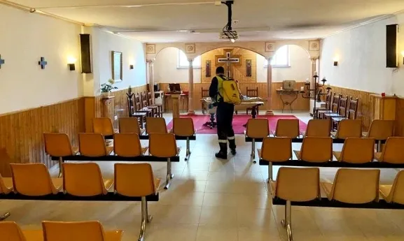 Tareas de desinfección en la capilla de una residencia de Salamanca