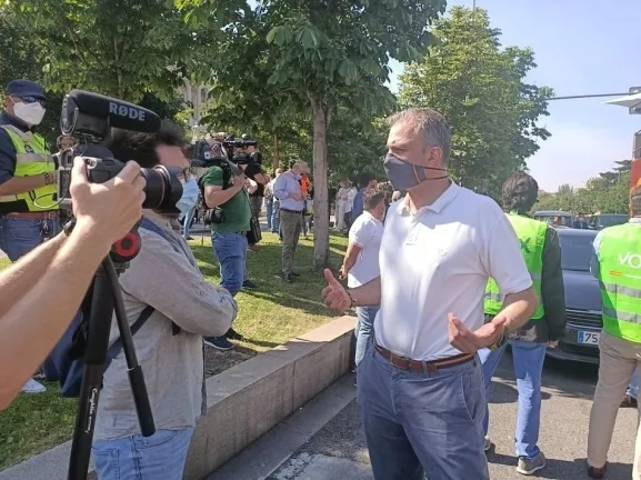 Centenares de manifestantes se han concentrado con sus vehículos en el Paseo de Recoletos de Madrid, portando banderas de España y coreando consignas de "gobierno dimisión" desde una hora antes de que arranque la concentración promovida por Vox bajo el título 'Fase libertad'.