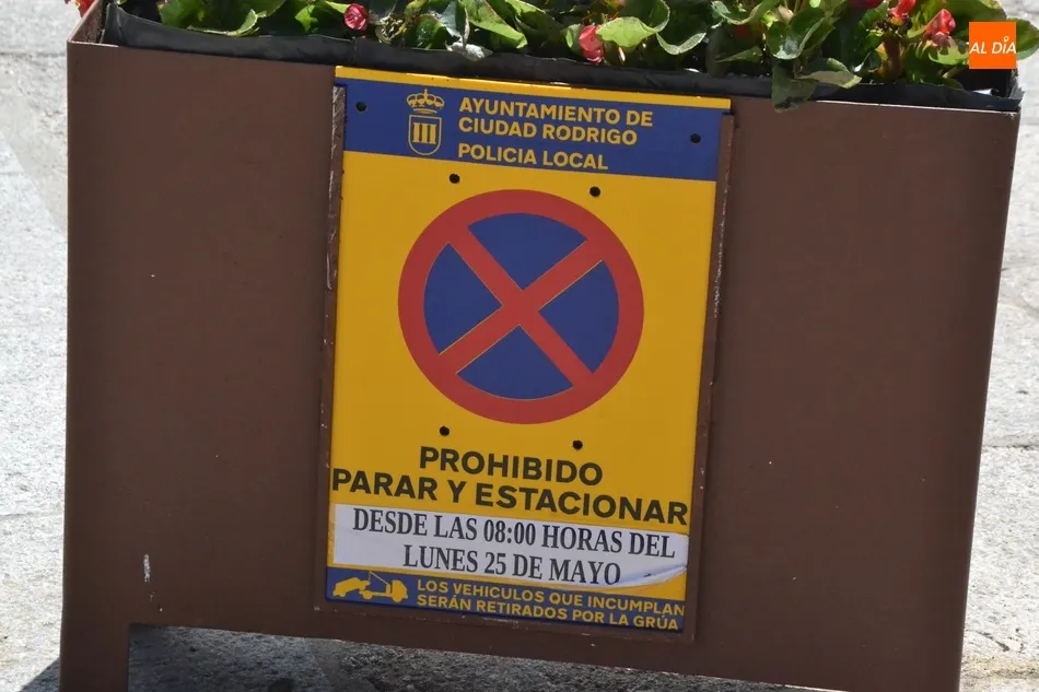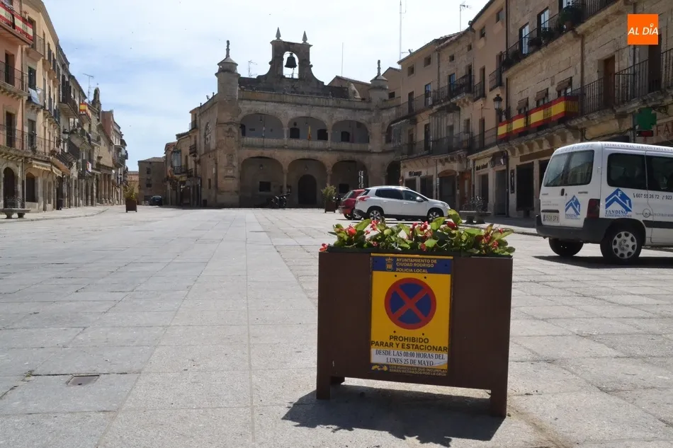 Como ya hemos publicado, los establecimientos de Ciudad Rodrigo podrán desplegar sus terrazas por el doble de su extensión habitual, siempre que lo hayan solicitado previamente. Para organizar cómo será el despliegue de terrazas por la Plaza Mayor, el Ayuntamiento ha comunicado que este lunes estará prohibido el aparcamiento en el ágora a partir de las 8.00 horas de la mañana, como se recoge en las señales de prohibición colocadas en las nuevas jardineras por allí desplegadas.