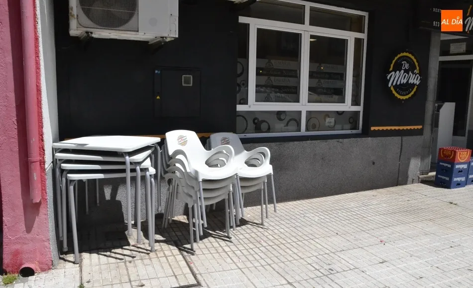 De igual modo se podían ver sillas y mesas a las puertas de la Pizzería De María, en la Avenida Conde de Foxá, mientras que el Bar Camarosa, en la calle Lorenza Iglesias, tiene colocado un cartel anunciando su reapertura para este lunes. Este bar, al igual que todos los establecimientos de hostelería de Ciudad Rodrigo, de momento solo pueden funcionar con terrazas, no pudiendo admitir clientes en el interior, salvo para llevar productos (como es el caso de la Heladería Menta y Limón de la Plaza, que está abierta desde el sábado).