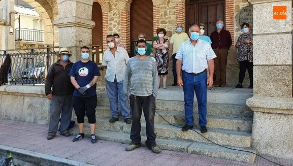 Funcionarios municipales y trabajadores del Ayuntamiento de Villarino, también con su alcalde, Julián Martín, realizaron un minuto de silencio a las puertas de la Casa Consistorial en homenaje a todas las víctimas del Covid-19.
