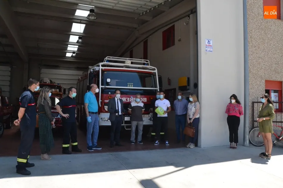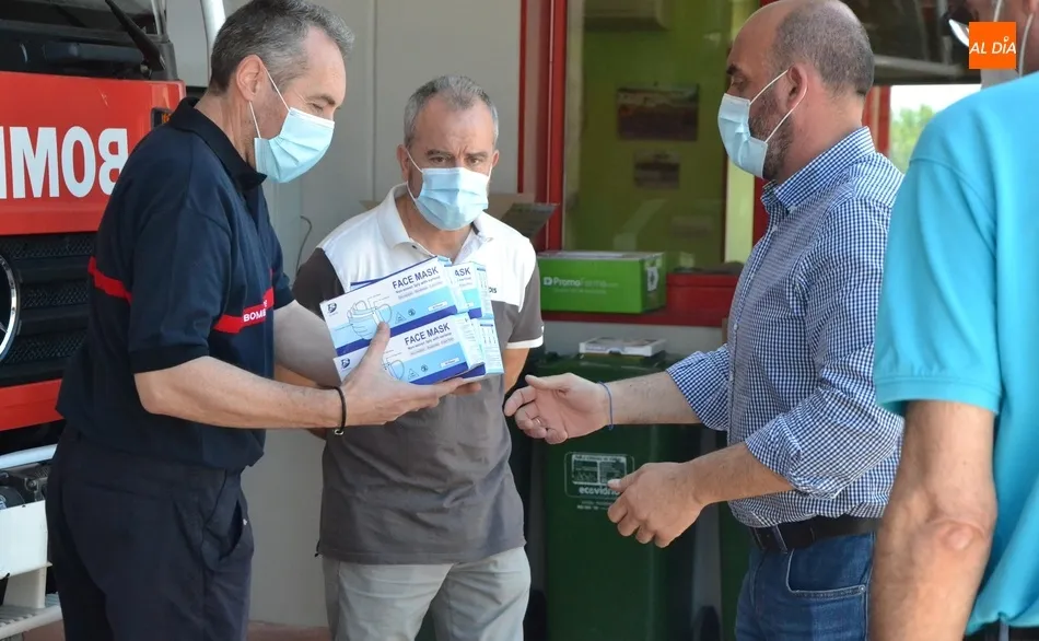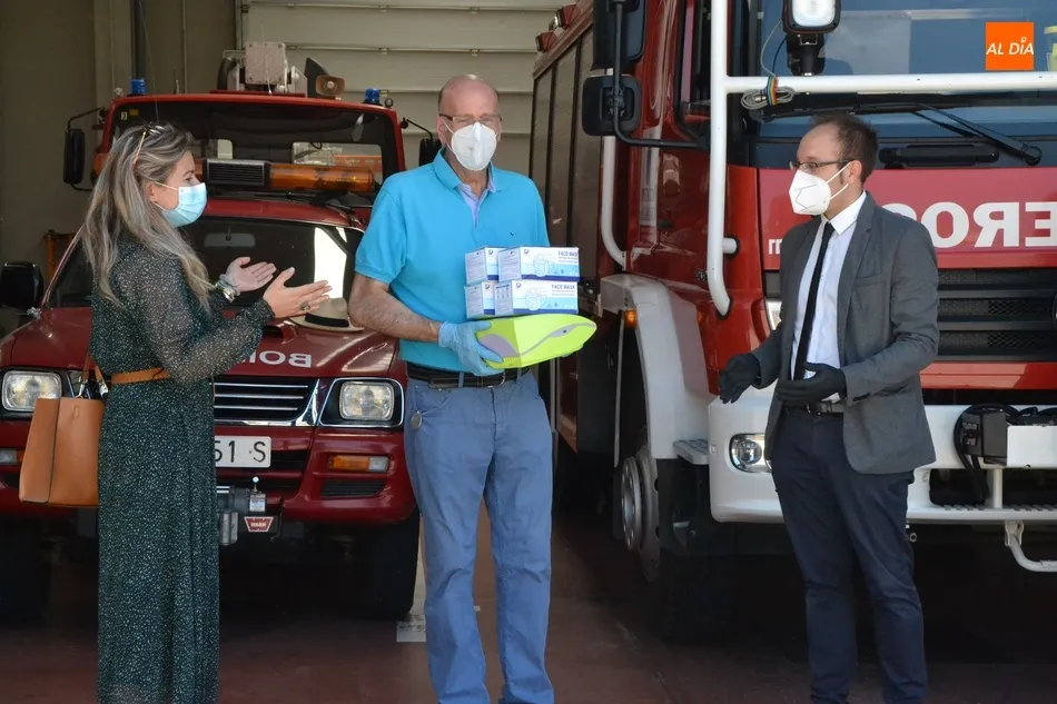 Por otro lado, se aprovechó este desplazamiento al Parque para hacer entrega a los Bomberos de una serie de mascarillas procedentes de la Mancomunidad Riberas del Águeda, Yeltes y Agadón. Marcos Iglesias agradeció a los Bomberos ?todo lo que habéis hecho por Ciudad Rodrigo y comarca durante este tiempo? de lucha contra el coronavirus.