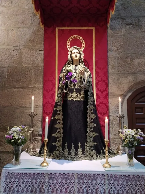 Las imágenes de Nuestro Padre Jesús Nazareno y la Santísima Virgen de la Misericordia lucen de en luto en recuerdo a todos los fallecidos por la pandemia del coronavirus. La Virgen ha sido vestida de negro riguroso mientras que la imagen del Nazareno porta un crespón negro en se?