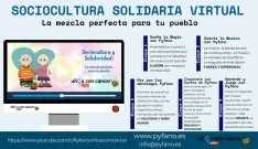 ?Sociocultura y solidaridad? ofrece 5 bloques virtuales por una aportación solidaria con actuaciones para poner a disposición de los vecinos del municipio, fomentando la cultura y la solidaridad, tan importante en estos momentos. Los bloques, están compuestos por sesiones de unos 15 minutos aprox de distintos artistas, siendo 45 minutos de contenido inédito por bloque, que podrán adquirir de forma independiente en función de sus intereses.