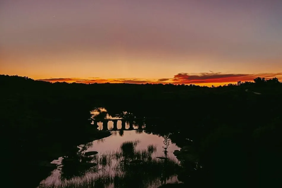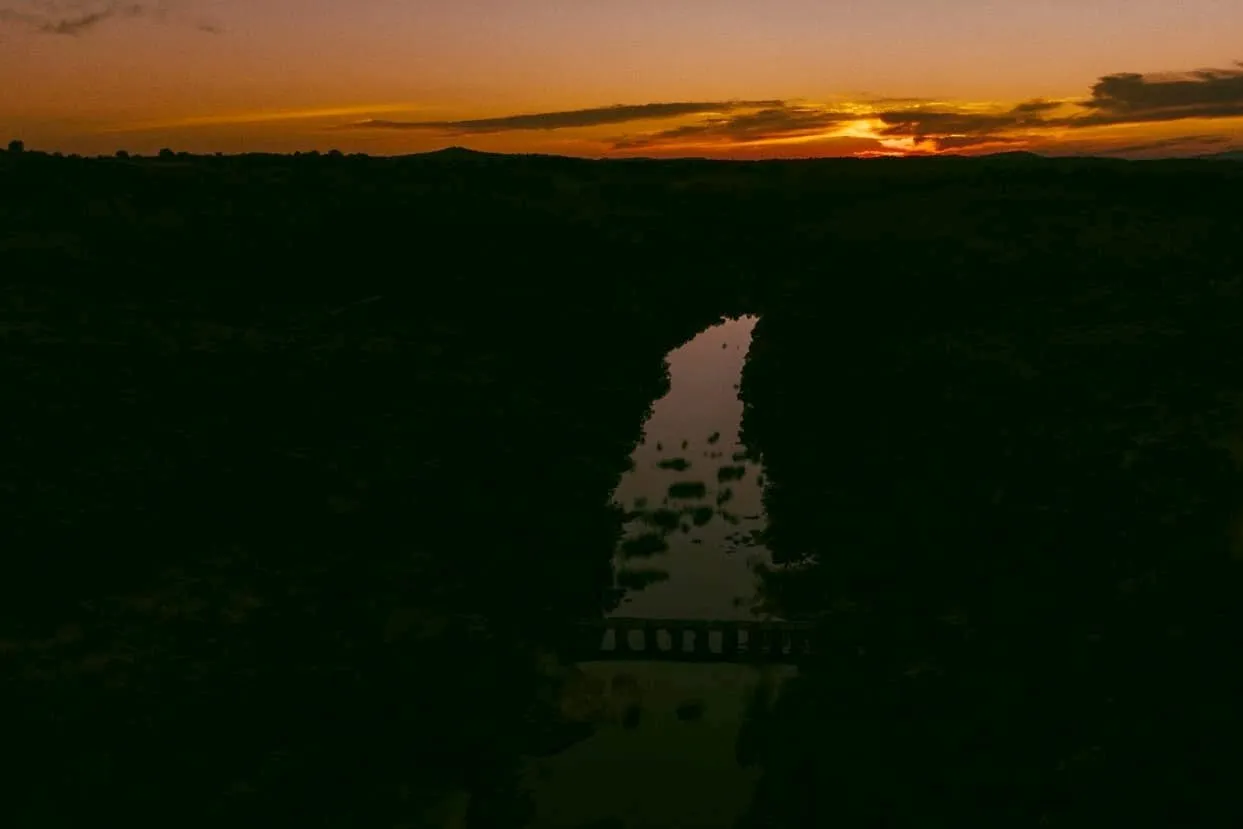 Imágenes de la puente de piedra sobre el río Uces tomadas por Luis Miguel Conde con un dron en Cabeza del Caballo.