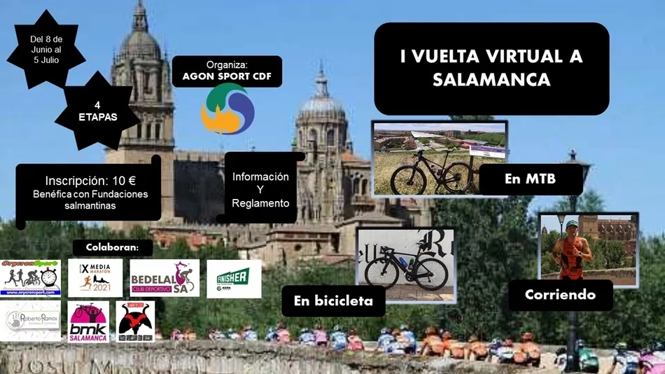 I Vuelta Virtual a Salamanca, una iniciativa que se llevará a cabo cuando la provincia pase a la fase II de desescalada, en la que se permitirá la movilidad por toda la provincia. Iniciativa impulsada por Agón Sport CDF, una vuelta a Salamanca de 4 etapas, teniendo una semana completa para realizar cada etapa. Los participantes se pueden inscribir en cualquiera de las 3 categorías: Mountain-Bike, Carrera o ciclismo de carretera. La primera etapa, si Sanidad autoriza el pase a la fase 2 a partir del 8 de junio, se disputaría entre esta fecha y el 14 de junio, domingo, inclusive.