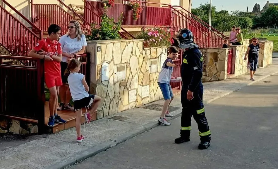 Los bomberos hicieron entrega al cumpleañero de la tradicional bolsa de chucherías y pegatinas para colorear tras la felicitación con el ?Cumpleaños feliz? de Parchís