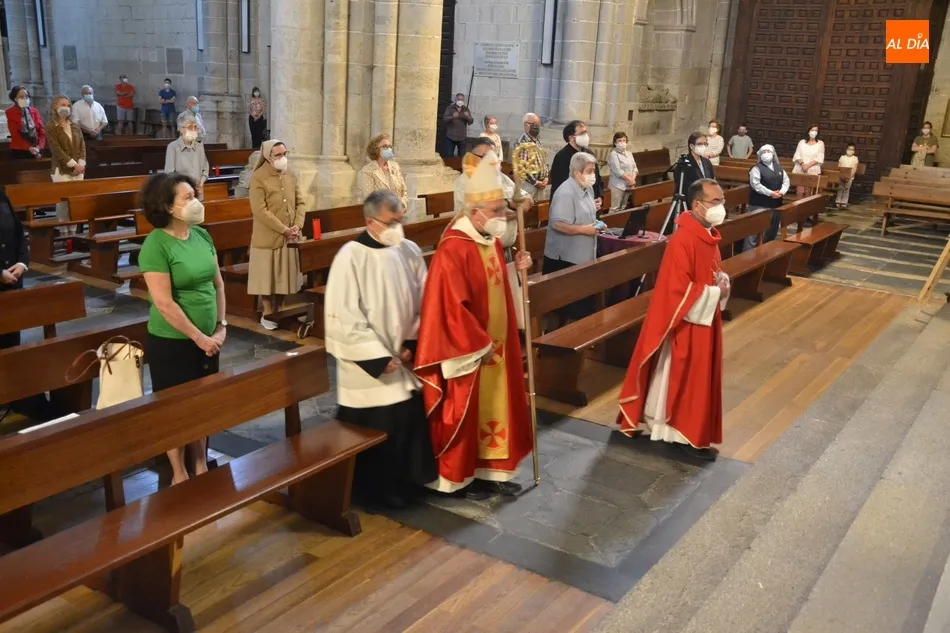 El punto culminante de esta celebración de Pentecostés 2020 en la Diócesis fue una misa que acogió en la tarde del sábado ?víspera de la conmemoración- la Catedral de Santa María de Ciudad Rodrigo, que fue presidida por el Administrador Apostólico de la Diócesis, Jesús García Burillo, quién estuvo acompañado por el Vicario de Pastoral, Gabriel Ángel Cid; y por Vidal Rodríguez Encinas.