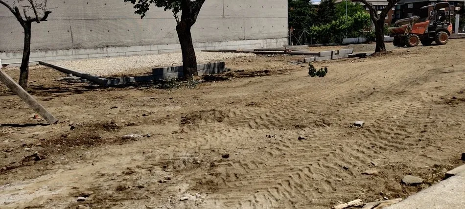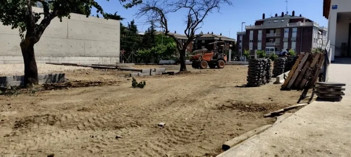 Se acomete una limpieza del terreno, un rebaje de la zona de la pista de mini basket y la demolición de la solera de las aceras