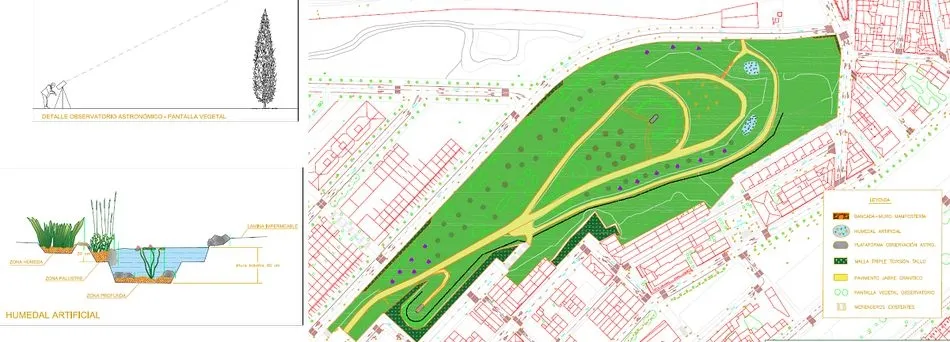 Aprovechando su posición a las afueras de la ciudad, la altura y condiciones del teso, así como la poca contaminación lumínica de la zona, el Parque contará con un mirador con un punto de observación astronómica (en ejecución) que sirva de atracción y generación de actividades de ocio. Para ello se generarán dos plazas, una en la zona norte y otra en la zona sur, situadas en las cotas más altas y rodeadas de una barrera vegetal. De esta forma, se llevará a cabo no solo una regeneración urbana, sino también una regeneración de mayor trasfondo que permita que el barrio y los espacios asociados a él evolucionen y se integren entre ellos y con el resto de la ciudad.