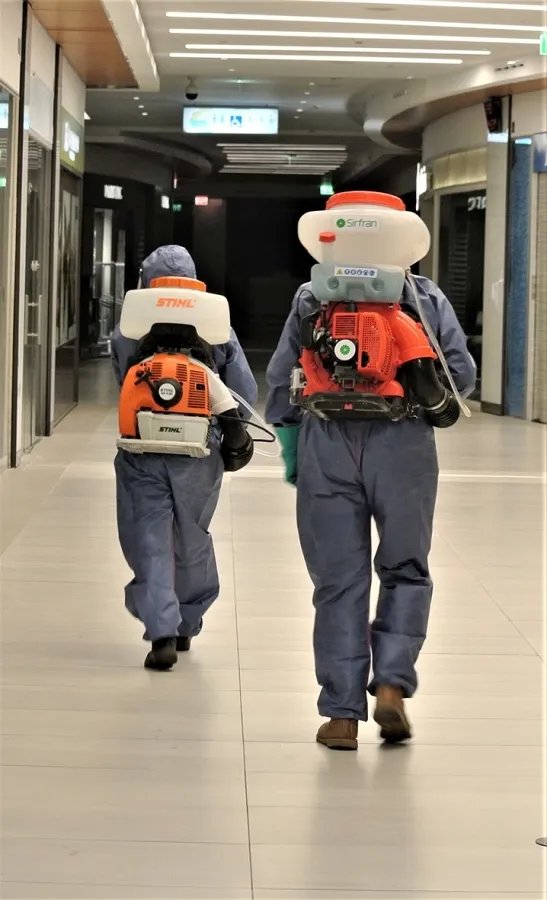 Durante estos trabajos de limpieza se han utilizado productos de alto nivel con gran poder de difusión para la desinfección aérea del ambiente, equipos y todas las superficies en zonas vacías y cerradas. Estos desinfectantes (viricida, bactericida, esporicida y fungicida) eliminan el 99% de los gérmenes del ambiente y de las superficies, son eficaces frente a esporas, y se pueden utilizar en almacenes de industrias y de alimentación. El tratamiento efectuado ha sido realizado por profesional especializado en ausencia de personas y alimentos.