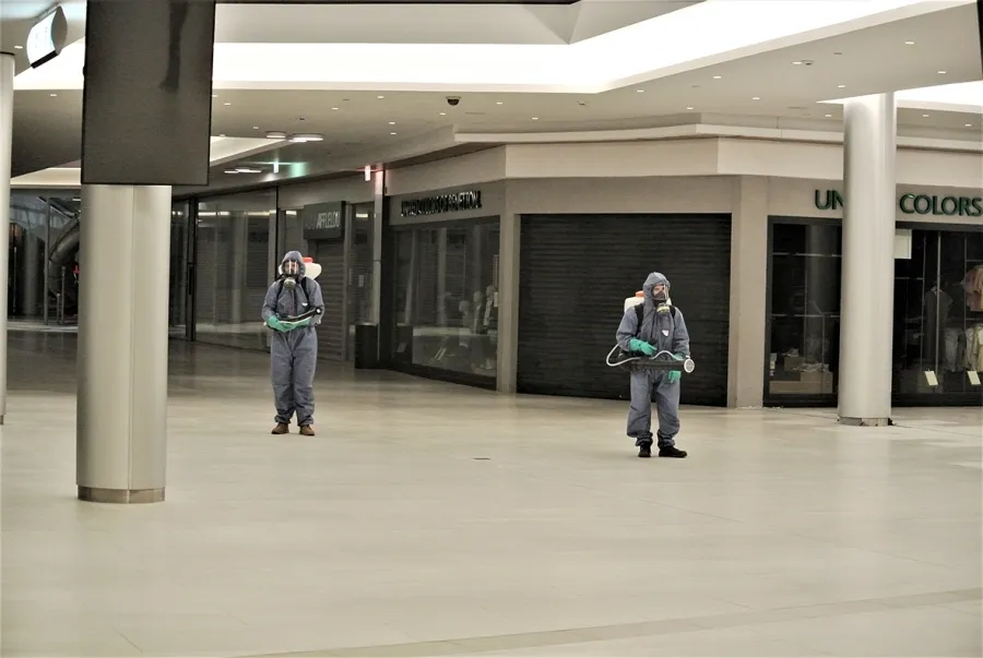 Desinfección total de las instalaciones del Centro Comercial El Tormes para su puesta a punto