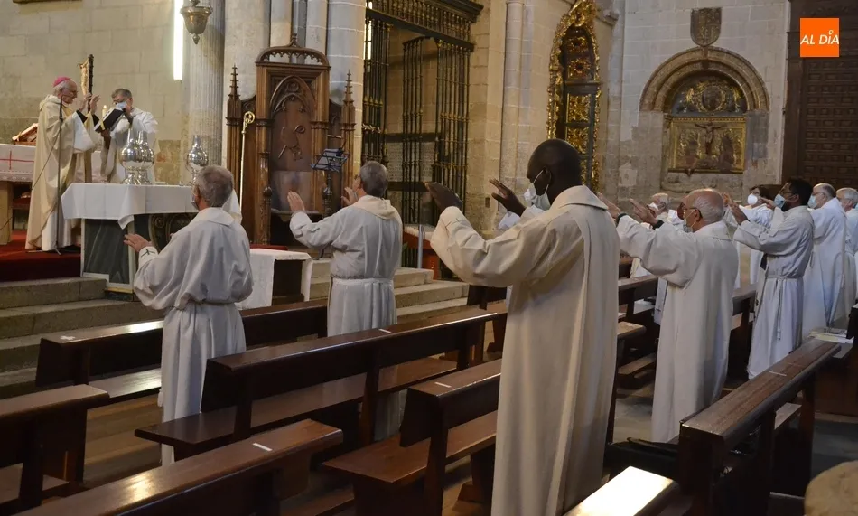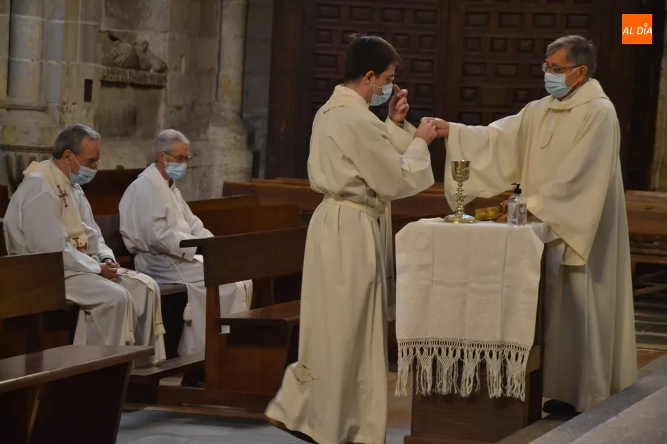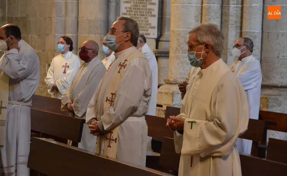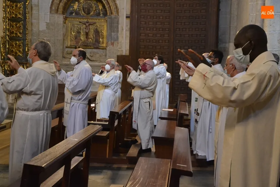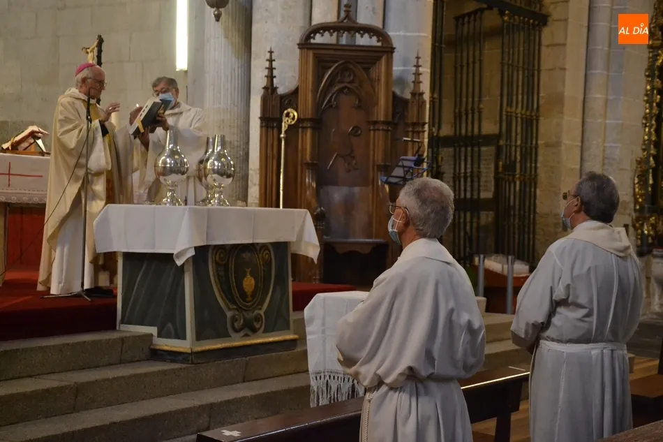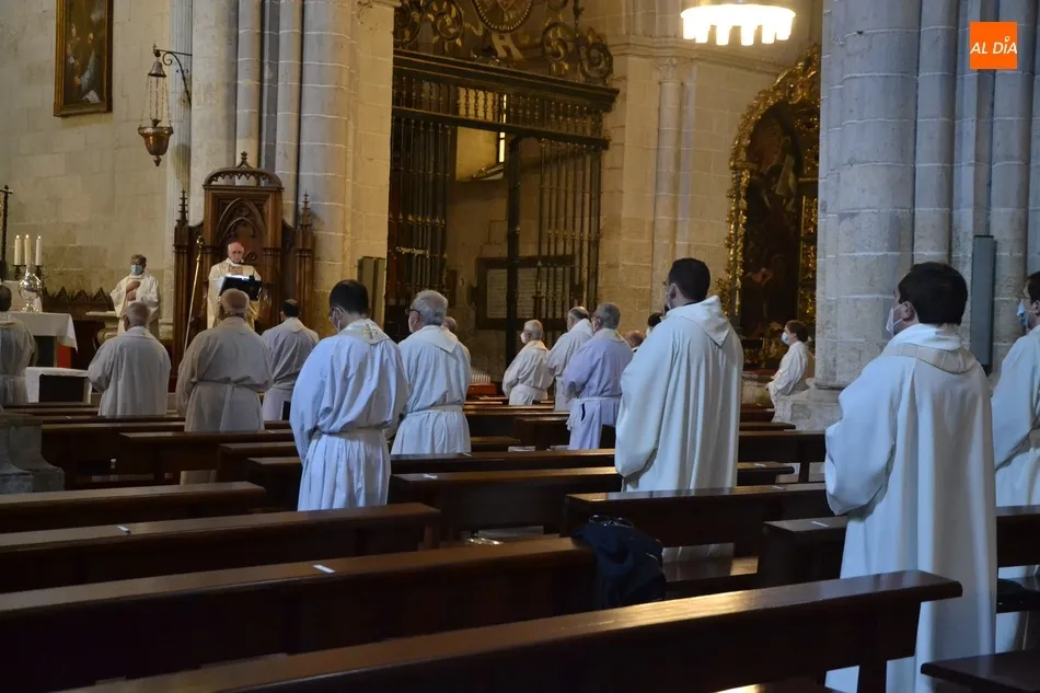A diferencia de lo que viene siendo habitual desde que se recuperaron los cultos abiertos al público, la misa de la mañana del jueves en la Catedral de Santa María de Ciudad Rodrigo se desarrolló a puerta cerrada, ya que estuvo reservada a los sacerdotes de la Diócesis Civitatense, que se reunieron prácticamente al completo por un doble motivo.