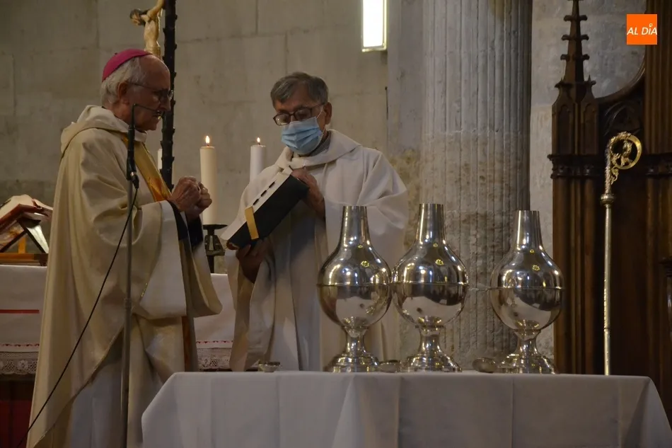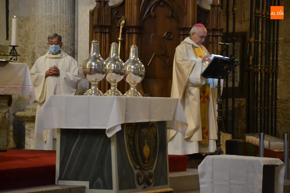Por un lado, la Diócesis aprovechó para recuperar la denominada Misa Crismal que se celebra tradicionalmente en la mañana del Martes Santo, en la cual se consagra el Santo Crisma que es usado durante el año para impartir los sacramentos del Bautismo, la Confirmación y el Orden Sacerdotal; y se bendicen los óleos, el de catecúmenos para los bautismos y el de los enfermos. La bendición durante la eucaristía de la mañana del jueves corrió a cargo del Administrador Apostólico de la Diócesis, Jesús García Burillo, a la conclusión de su homilía.