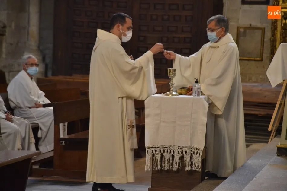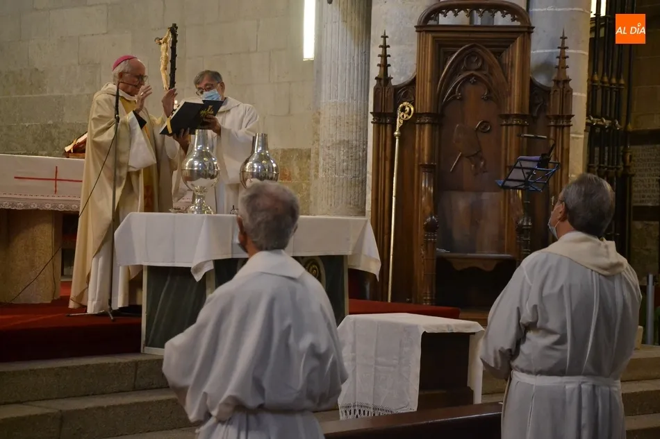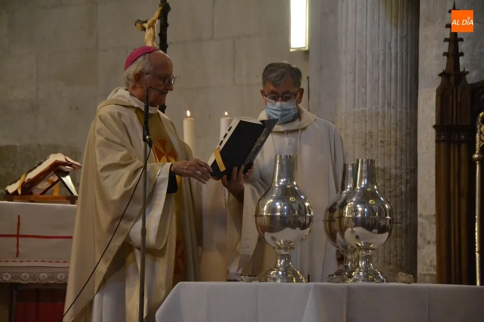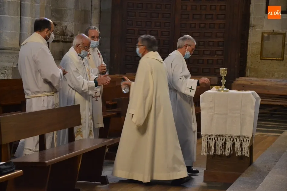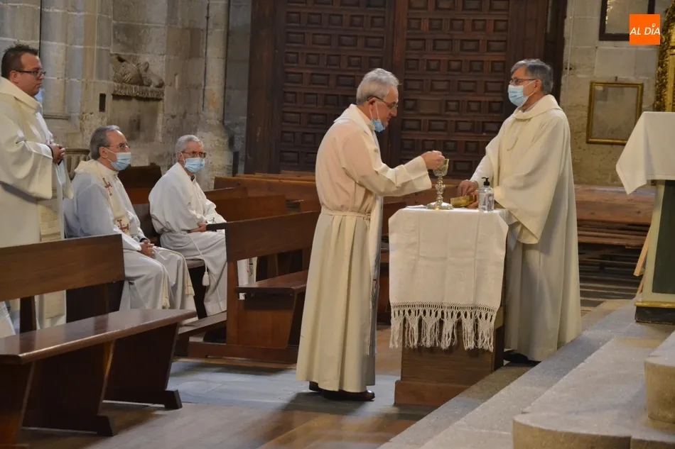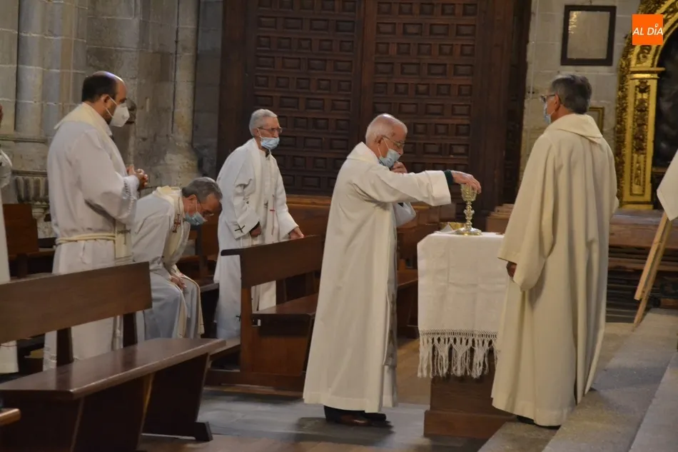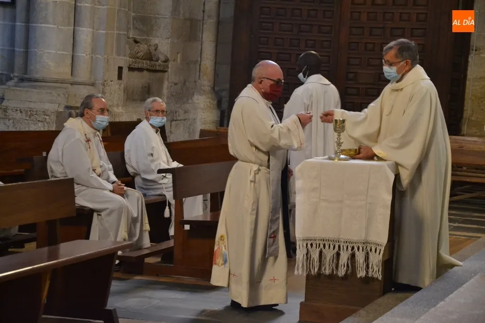 Durante la misa de la mañana del jueves hubo un recuerdo por parte de Jesús García Burillo para Alfredo Ramajo y para el resto de sacerdotes fallecidos por el coronavirus y por otras causas durante el último año. La celebración concluyó con un aplauso a los dos sacerdotes que celebran este año sus Bodas de Oro como presbíteros.