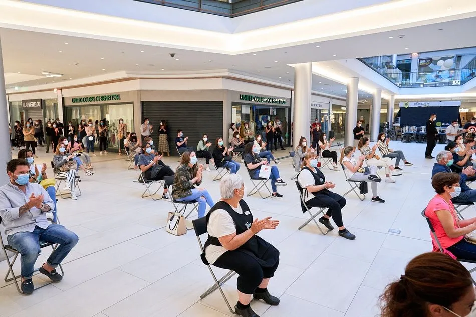 Como parte de la preparación de la apertura de todos los locales, el Centro Comercial celebró en la tarde de ayer una reunión con los trabajadores de El Tormes, tanto de los establecimientos como de los equipos del propio Centro, que sirvió para repasar todas las medidas de seguridad adoptadas y a las que se suman las implantadas por cada uno de los establecimientos. Tal y como explicó la gerente del Centro Comercial El Tormes, Cuca Gonzalo, se han puesto en marcha nuevos protocolos y sistemas que no solo cumplen la normativa, sino que la excedan brindando así la máxima seguridad y comodidad a clientes y empleados.