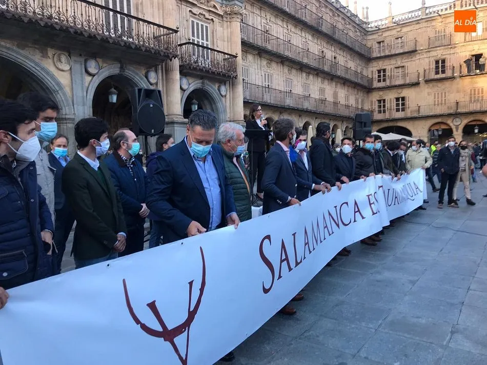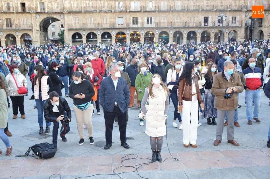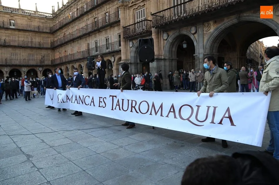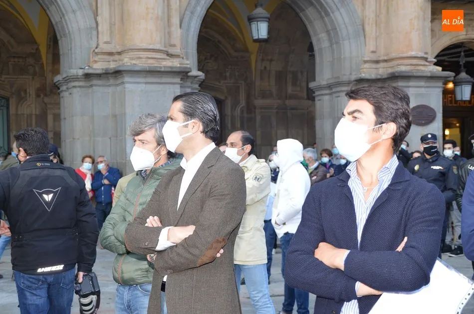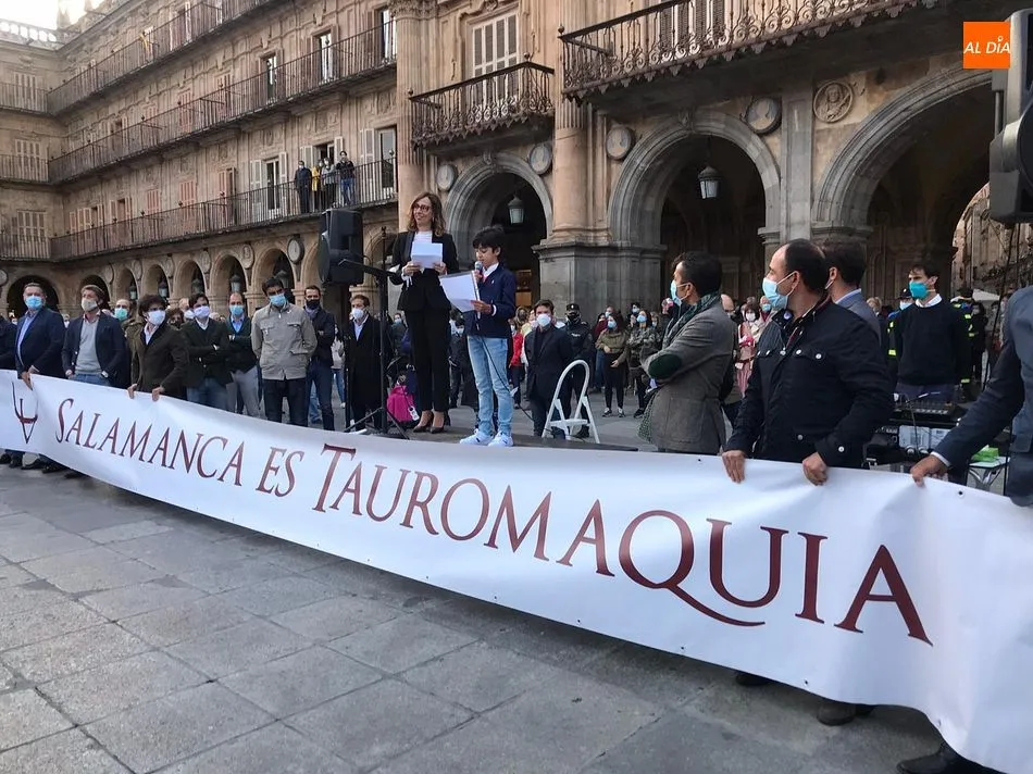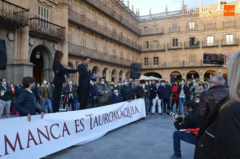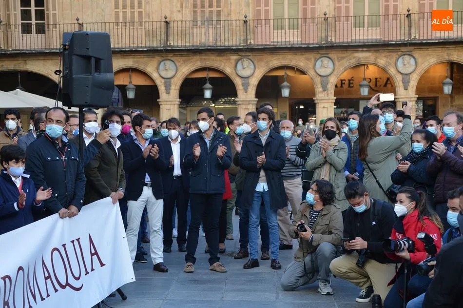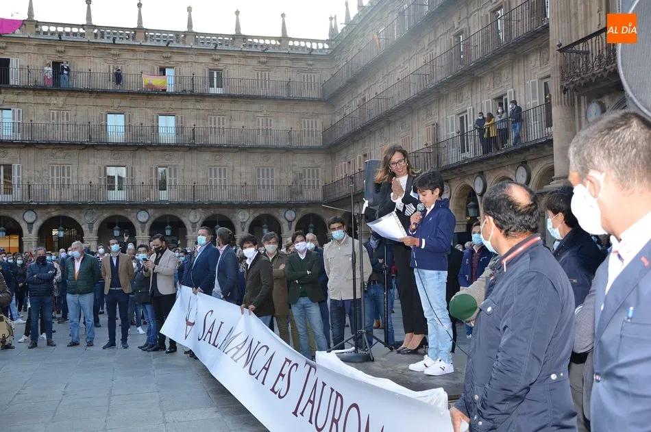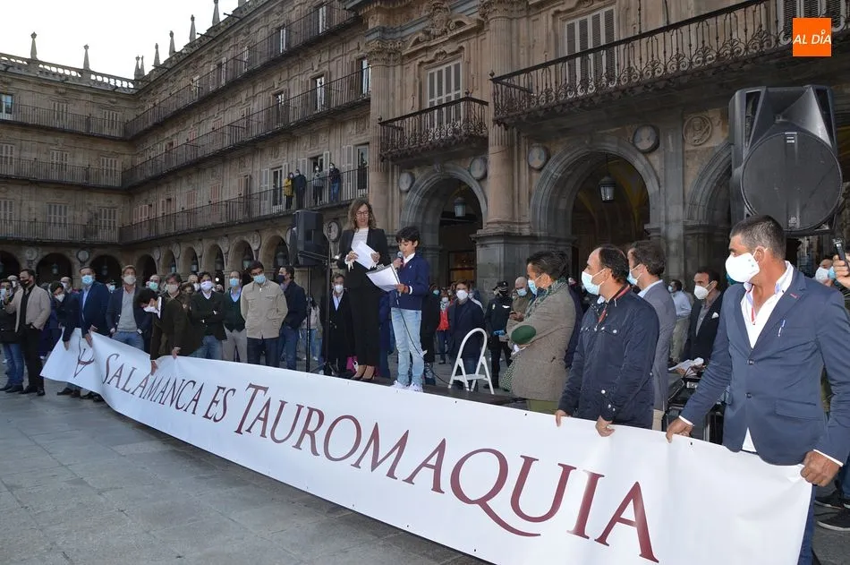Miles de personas respondieron este viernes a la llamada del colectivo ?Salamanca es Tauromaquia? con un llenazo en la Plaza Mayor y el mundo del toro volvió a dar una lección reivindicado ?respeto? al sector con la presencia de las principales figuras del toreo como Ponce, Manzanares, Castella, Juli, Perera, Ureña, Urdiales, Pablo Aguado, Manuel Escribano, Jiménez Fortes o Cristina Sánchez como representante de la Fundación Toro de Lidia. Los diestros salmantinos, como no podía ser de otra manera, apoyaron la causa, así como ganaderos, banderilleros, recortadores, empresarios taurinos y centenares de aficionados llegados de todos los puntos de la provincia. Además, todos los presentes mantuvieron un minuto de silencio por los fallecidos por la pandemia de coronavirus.