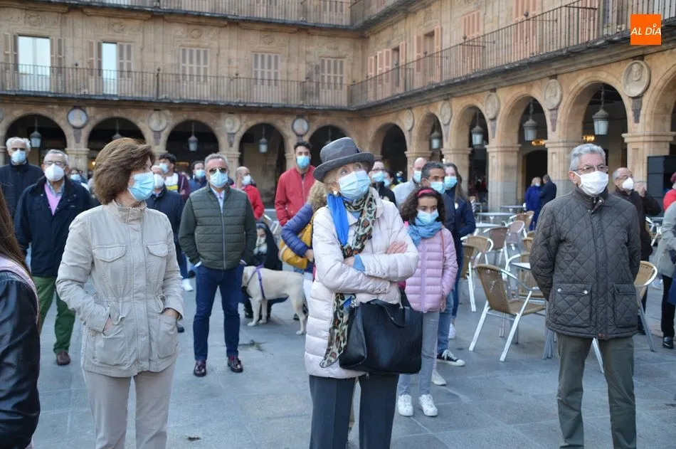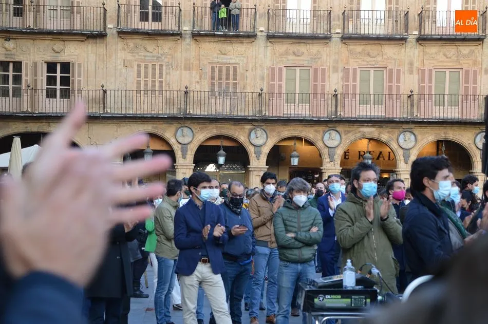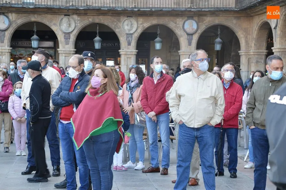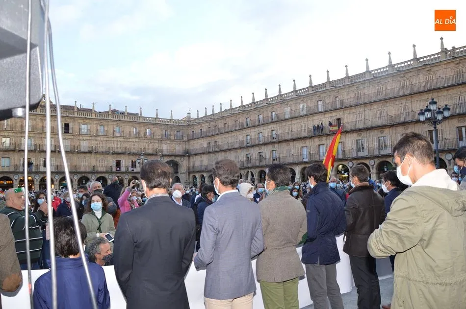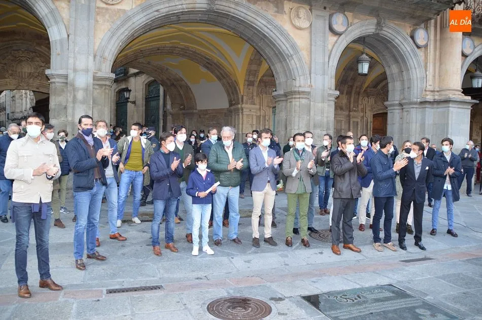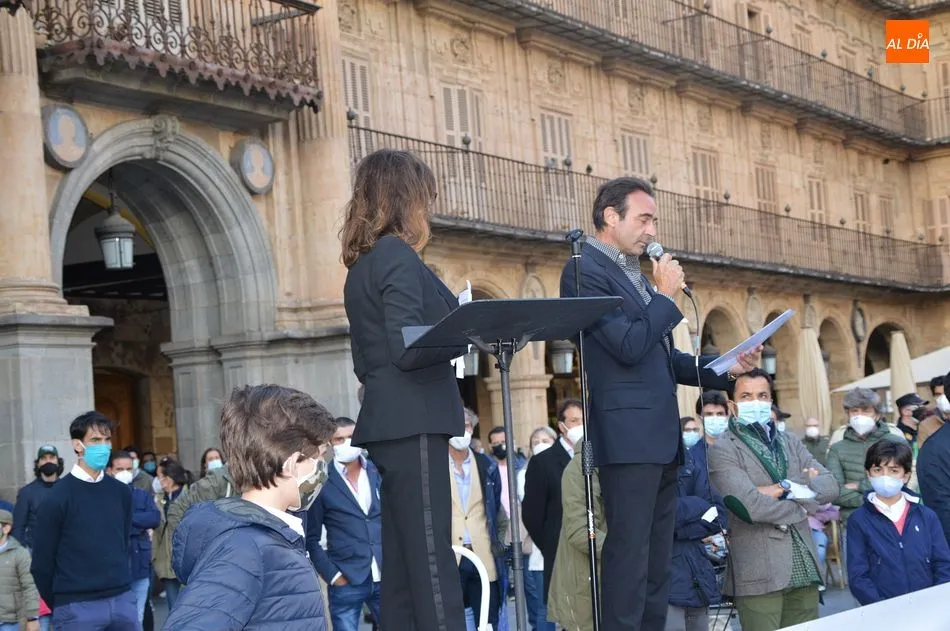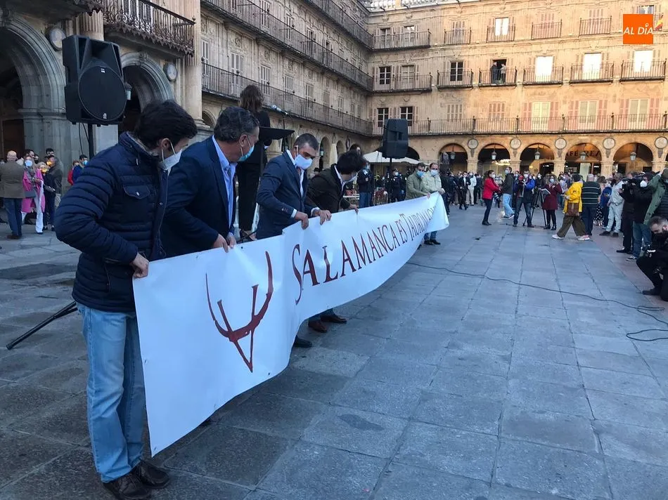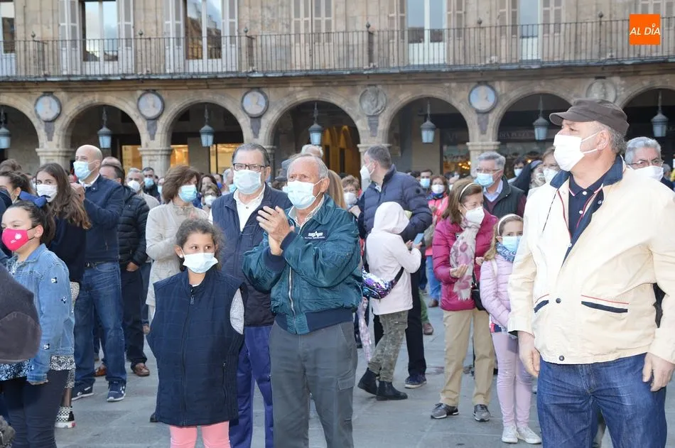 Miles de personas respondieron este viernes a la llamada del colectivo ?Salamanca es Tauromaquia? con un llenazo en la Plaza Mayor y el mundo del toro volvió a dar una lección reivindicado ?respeto? al sector con la presencia de las principales figuras del toreo como Ponce, Manzanares, Castella, Juli, Perera, Ureña, Urdiales, Pablo Aguado, Manuel Escribano, Jiménez Fortes o Cristina Sánchez como representante de la Fundación Toro de Lidia. Los diestros salmantinos, como no podía ser de otra manera, apoyaron la causa, así como ganaderos, banderilleros, recortadores, empresarios taurinos y centenares de aficionados llegados de todos los puntos de la provincia. Además, todos los presentes mantuvieron un minuto de silencio por los fallecidos por la pandemia de coronavirus.