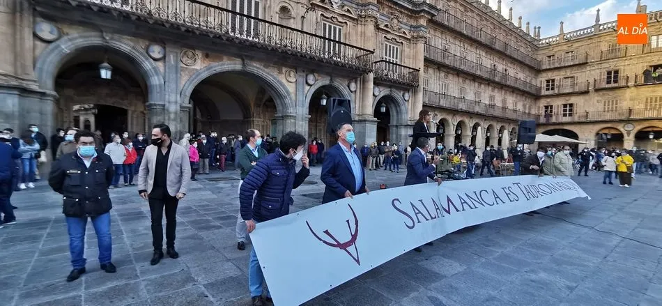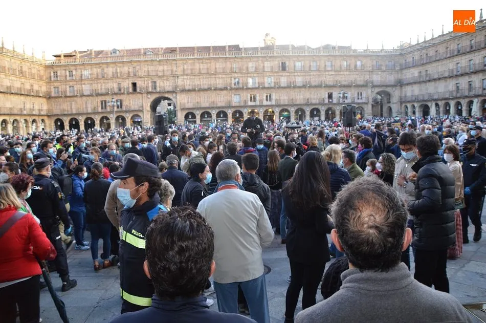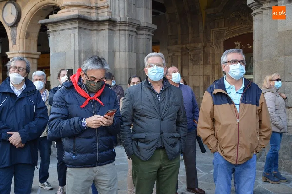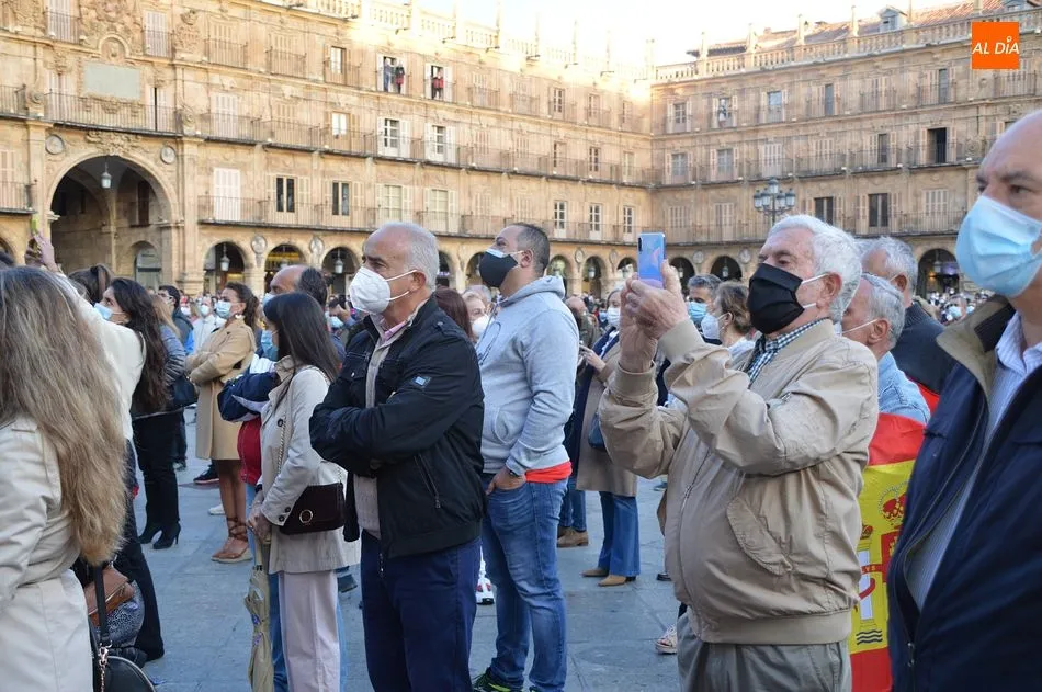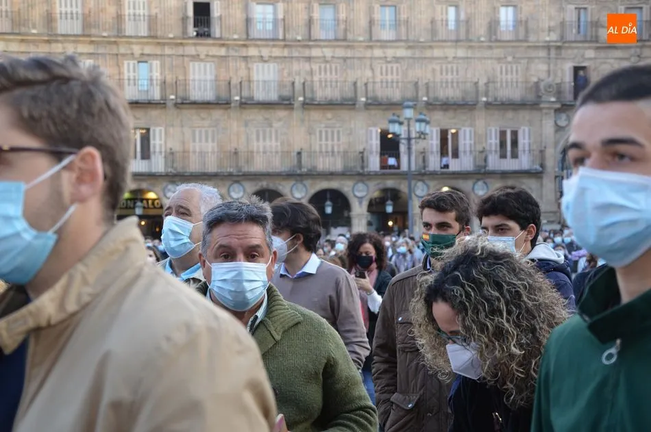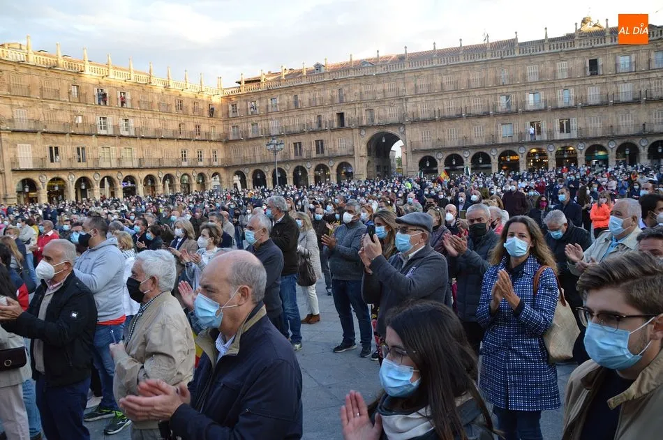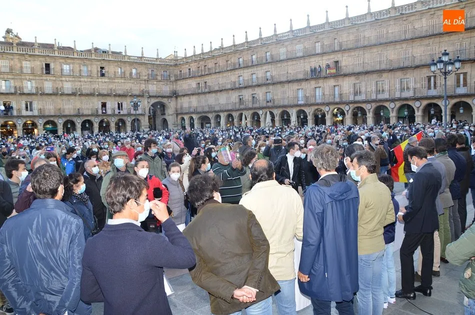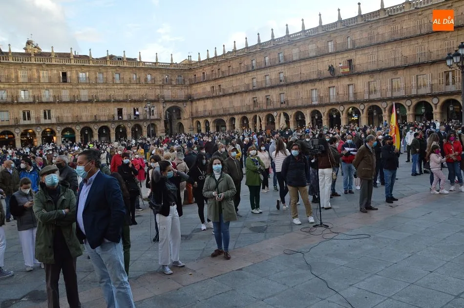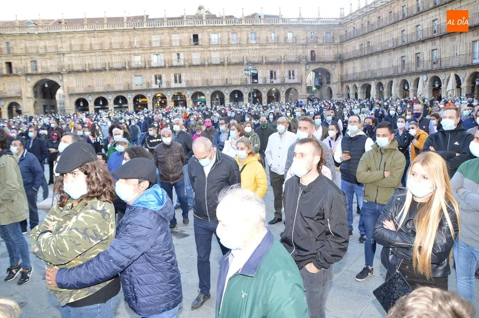 Miles de personas respondieron este viernes a la llamada del colectivo ?Salamanca es Tauromaquia? con un llenazo en la Plaza Mayor y el mundo del toro volvió a dar una lección reivindicado ?respeto? al sector con la presencia de las principales figuras del toreo como Ponce, Manzanares, Castella, Juli, Perera, Ureña, Urdiales, Pablo Aguado, Manuel Escribano, Jiménez Fortes o Cristina Sánchez como representante de la Fundación Toro de Lidia. Los diestros salmantinos, como no podía ser de otra manera, apoyaron la causa, así como ganaderos, banderilleros, recortadores, empresarios taurinos y centenares de aficionados llegados de todos los puntos de la provincia. Además, todos los presentes mantuvieron un minuto de silencio por los fallecidos por la pandemia de coronavirus.