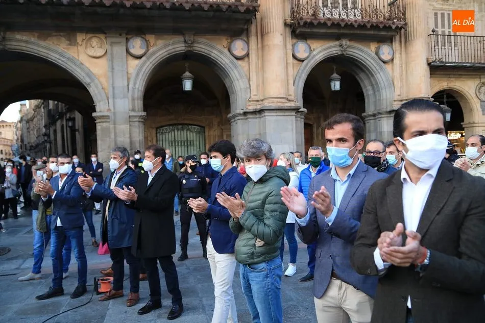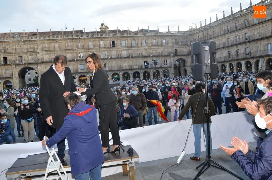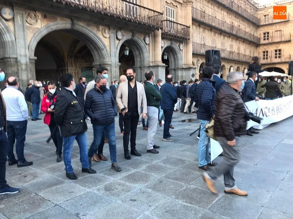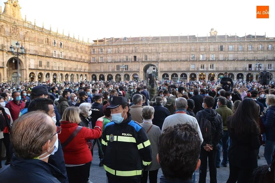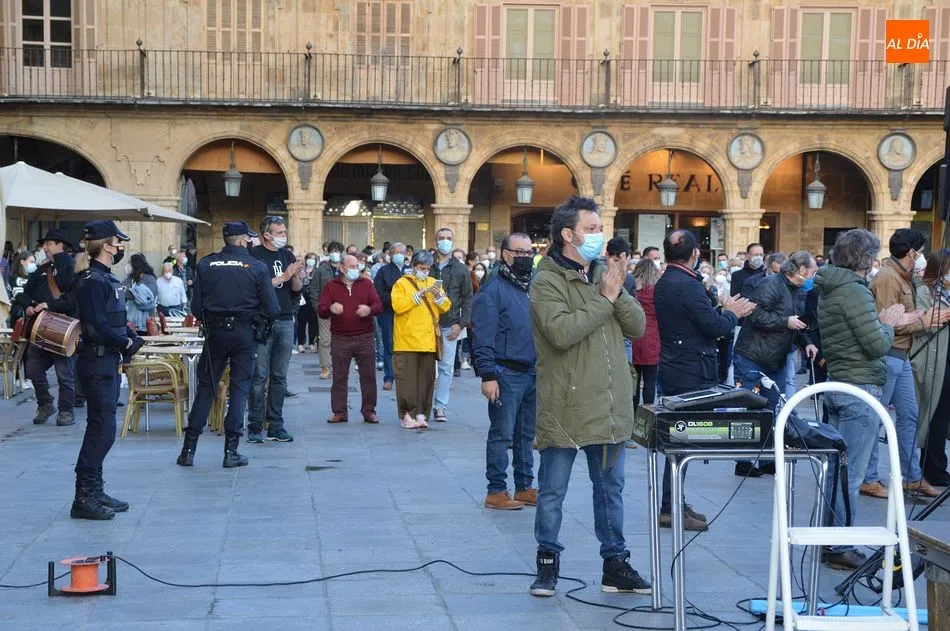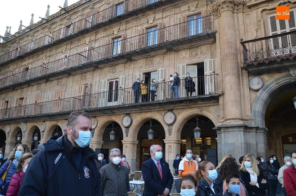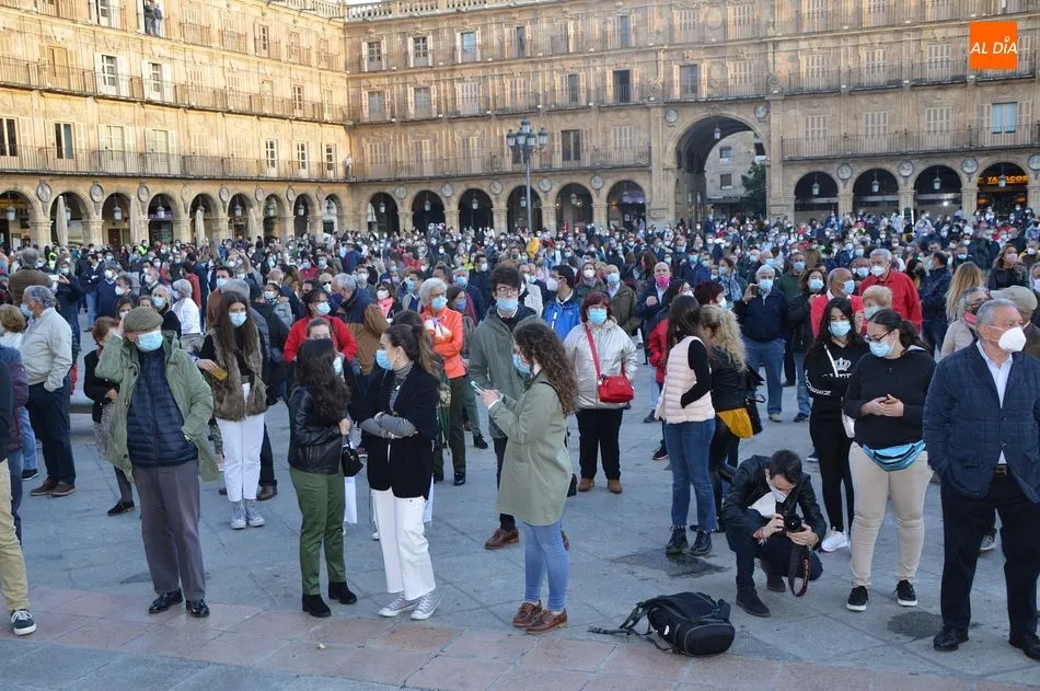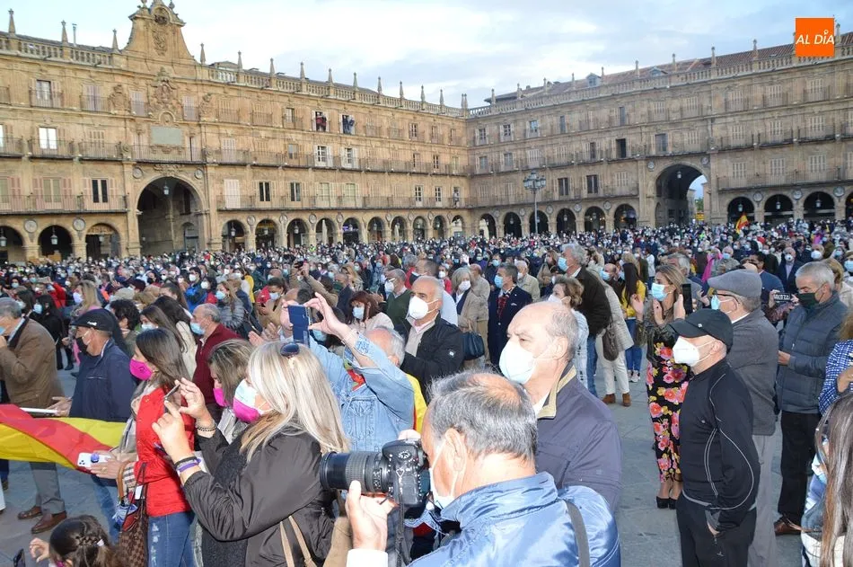 Miles de personas respondieron este viernes a la llamada del colectivo ?Salamanca es Tauromaquia? con un llenazo en la Plaza Mayor y el mundo del toro volvió a dar una lección reivindicado ?respeto? al sector con la presencia de las principales figuras del toreo como Ponce, Manzanares, Castella, Juli, Perera, Ureña, Urdiales, Pablo Aguado, Manuel Escribano, Jiménez Fortes o Cristina Sánchez como representante de la Fundación Toro de Lidia. Los diestros salmantinos, como no podía ser de otra manera, apoyaron la causa, así como ganaderos, banderilleros, recortadores, empresarios taurinos y centenares de aficionados llegados de todos los puntos de la provincia. Además, todos los presentes mantuvieron un minuto de silencio por los fallecidos por la pandemia de coronavirus.