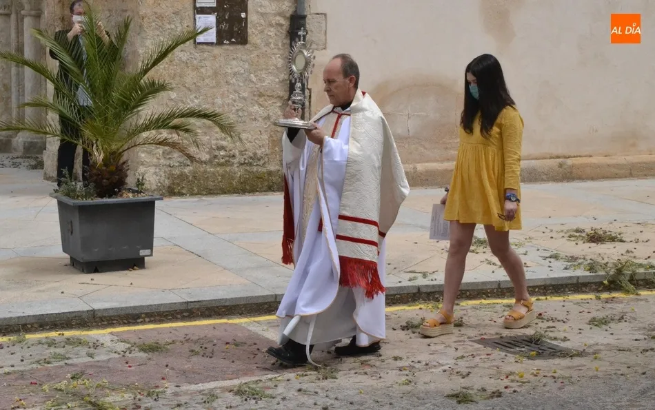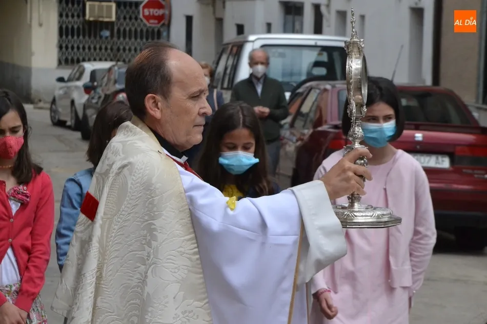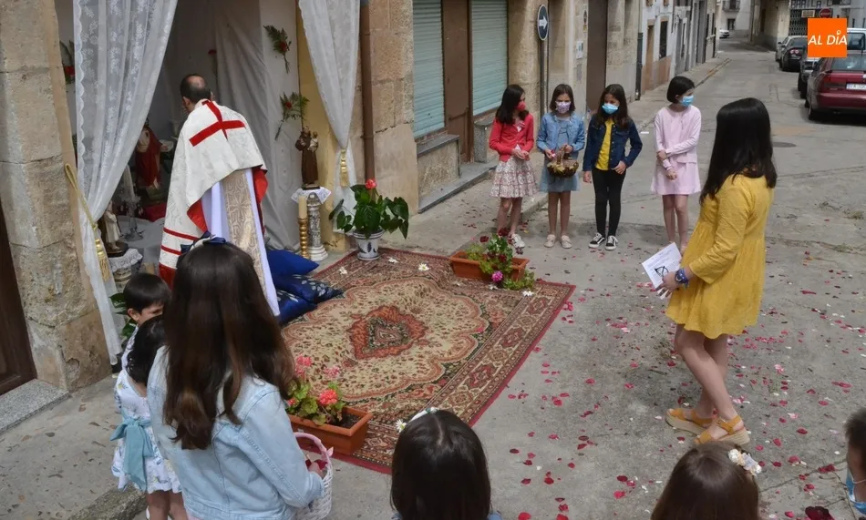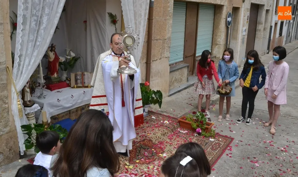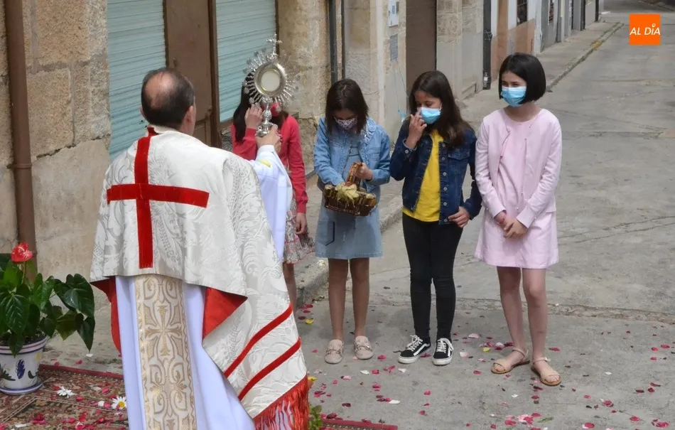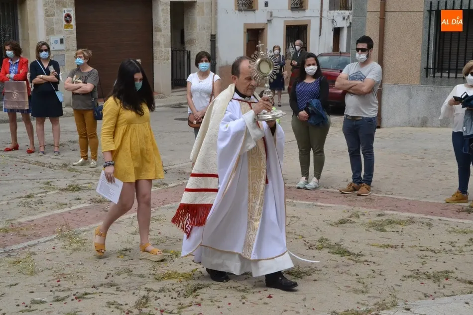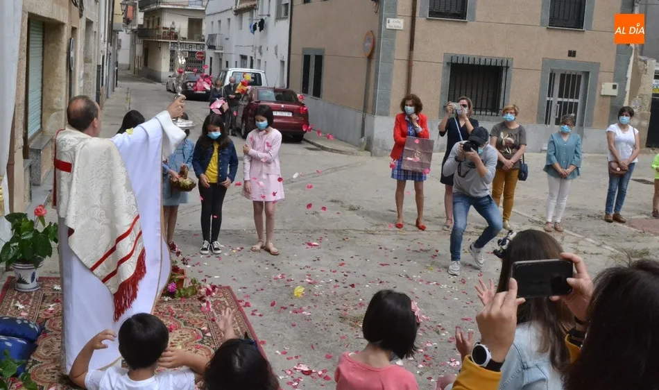 Los fieles no salieron a la calle (la celebración se remató posteriormente en el interior del templo), siendo presenciada la bendición únicamente por varias personas que estaban fuera, entre ellas varios niños que se encargaron de lanzarle pétalos a la custodia del Santísimo, permitiendo así mantener la tradición, ya que habitualmente la custodia recibe pétalos arrojados por los niños que han hecho la Primera Comunión en la Parroquia durante la primavera.