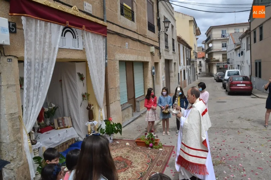 En este año tan diferente debido al coronavirus, la Parroquia de San Andrés adelantó a la misma mañana del Domingo de Corpus su celebración de la festividad (en la Parroquia de San Cristóbal sí que lo harán en la Octava de Corpus), contando incluso justo enfrente de la Iglesia con un altar preparado por los responsables de la Asociación de Vecinos de San Andrés.