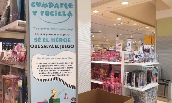 El Corte Inglés se suma, por sexto año consecutivo, a la campaña ?Comparte y Recicla?, de la Fundación Crecer Jugando, que bajo el lema ?Tus juguetes darán mucho juego?, se dedica a recoger aquellos ya utilizados para darles una segunda vida en manos de niños en situación de vulnerabilidad. El Corte Inglés ha firmado un nuevo acuerdo de colaboración con la Fundación Crecer Jugando para que los pequeños más vulnerables puedan tener juguetes durante todo el año.